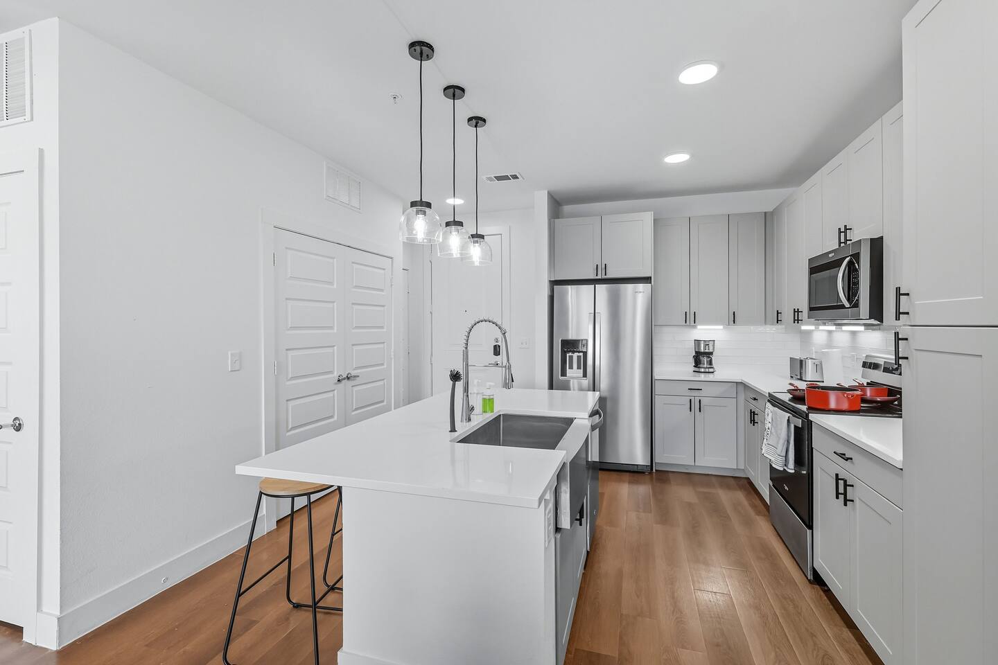 🔔 Respect the Space: Please treat the home with care. 🐾 Pet Policy: We welcome cats and dogs (size restrictions apply). Up to 3 pets per stay. Please inform us in advance — bringing a pet without prior notice may result in cancellation. Pet Cleaning Fees: 1–4 nights: $100 5–29 nights: $150 30+ nights: $200 🆔 Guest Verification through our Guest Portal: To comply with legal and property security rules, you may be asked to: Provide a copy of a valid government-issued ID Confirm your contact info Complete our verification portal In some cases, undergo a background check A mandatory Guest Protection Waiver. The waiver is $25 per night (capped at $150) and covers up to $400 in accidental damages, giving you added peace of mind during your stay. Important: Your info is collected only for verification and screening and is not stored or used for other purposes. 📜 Rental Agreement: By booking, you agree to: Follow our rental terms & conditions Understand that check-in instructions may be withheld until verification is complete ⏱ Verification Timing: All guests must provide required info within 24 hours of booking Same-day bookings: info needed within 1 hour Reservations may be canceled if verification criteria are not met 📹 Security & Monitoring: Surveillance cameras are located in building hallways for guest safety A Minut noise monitoring device is installed in the unit — it monitors decibel levels only and does not record audio or video 🏢 The Grayson on 4th: The Grayson is a modern, professionally managed apartment community. While the building and its amenities (pool, gym, yoga studio, golf simulator, clubhouse) are maintained by property management, we are not responsible for any building-level maintenance, repairs, or temporary amenity closures outside of our control. Our unit is professionally cleaned and fully prepped before every stay. If anything inside the unit doesn't meet your expectations, let us know right away and we'll make it right.