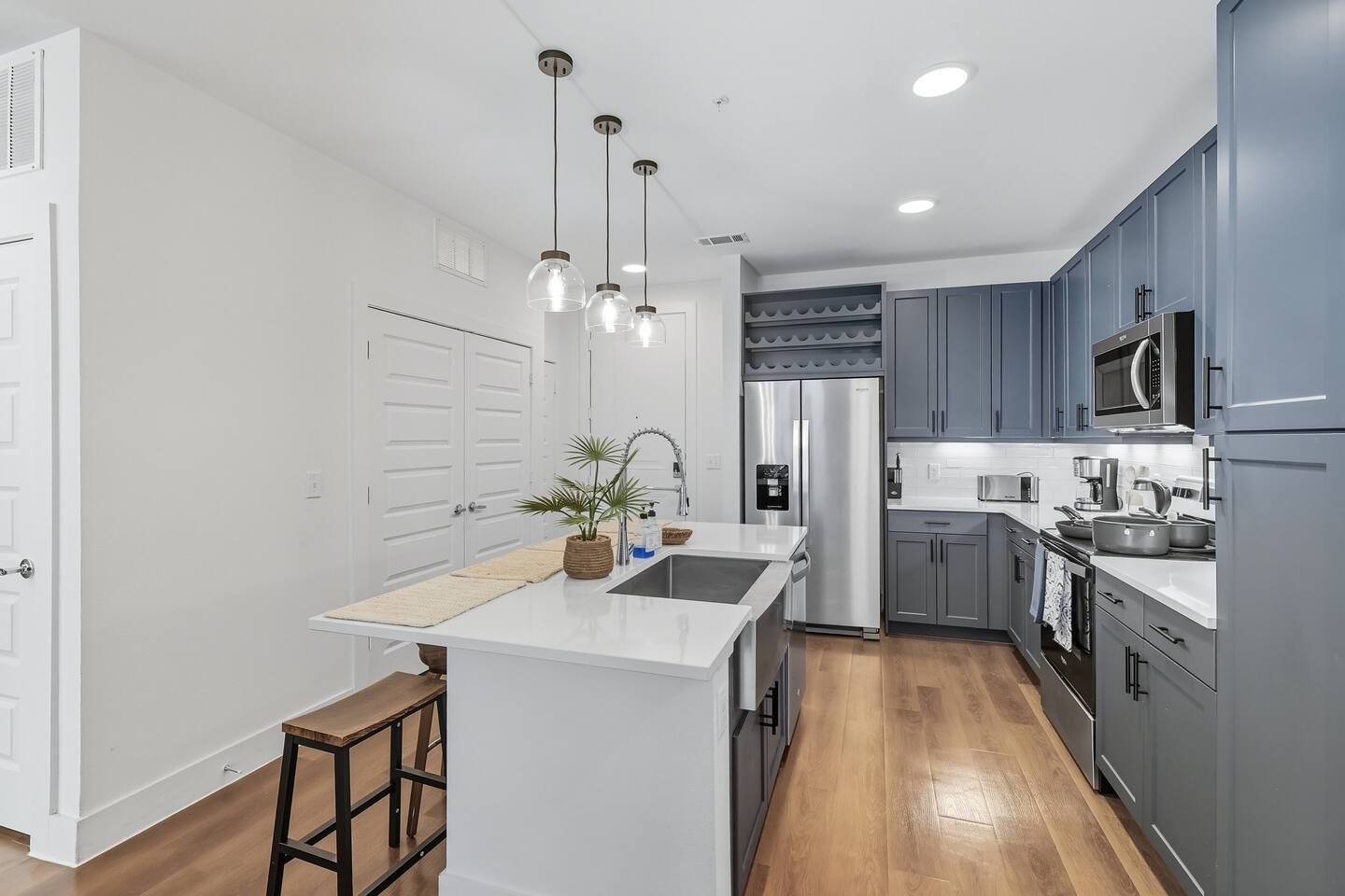 🔔 Respect the Space: Please treat the home with care. 🐾 Pet Policy: We welcome cats and dogs (size restrictions apply). Up to 3 pets per stay. Please inform us in advance — bringing a pet without prior notice may result in cancellation. Pet Cleaning Fees: 1–4 nights: $100 5–29 nights: $150 30+ nights: $200 🆔 Guest Verification through our Guest Portal: To comply with legal and property security rules, you may be asked to: Provide a copy of a valid government-issued ID Confirm your contact info Complete our verification portal In some cases, undergo a background check A mandatory Guest Protection Waiver. The waiver is $25 per night (capped at $150) and covers up to $400 in accidental damages, giving you added peace of mind during your stay. Important: Your info is collected only for verification and screening and is not stored or used for other purposes. 📜 Rental Agreement: By booking, you agree to: Follow our rental terms & conditions Understand that check-in instructions may be withheld until verification is complete ⏱ Verification Timing: All guests must provide required info within 24 hours of booking Same-day bookings: info needed within 1 hour Reservations may be canceled if verification criteria are not met 📹 Security & Monitoring: Surveillance cameras are located in building hallways for guest safety A Minut noise monitoring device is installed in the unit — it monitors decibel levels only and does not record audio or video 🏢 The Grayson on 4th: The Grayson is a modern, professionally managed apartment community. While the building and its amenities (pool, gym, yoga studio, golf simulator, clubhouse) are maintained by property management, we are not responsible for any building-level maintenance, repairs, or temporary amenity closures outside of our control. Our unit is professionally cleaned and fully prepped before every stay. If anything inside the unit doesn't meet your expectations, let us know right away and we'll make it right.