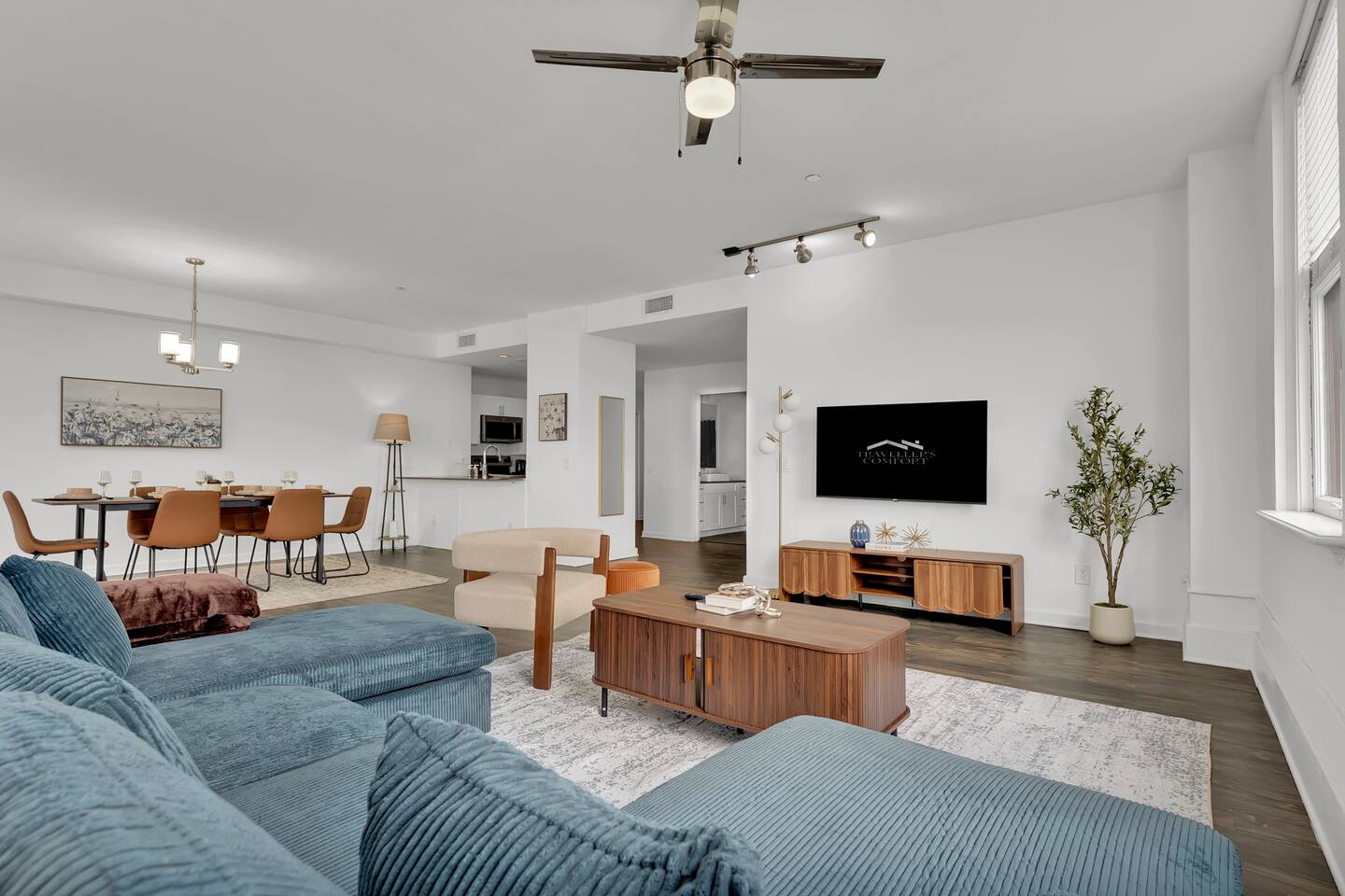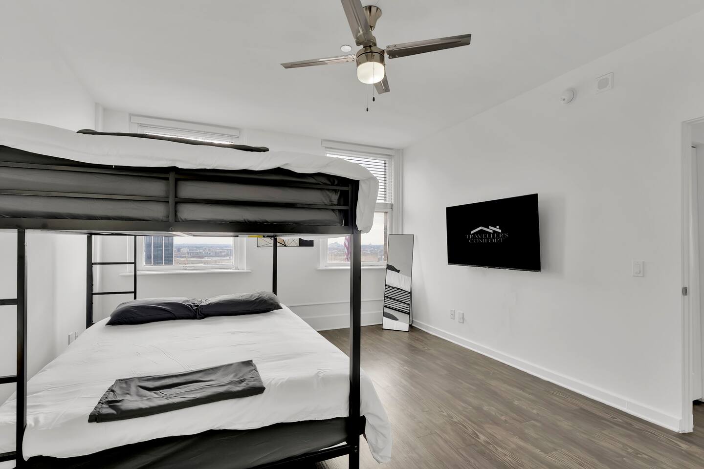 Step Into History. Stay in Style. Welcome to the Historic Electric Building — a landmark of downtown Fort Worth, nearly a century in the making. This stunning 2BR/2BA condo pairs original architectural details with modern designer finishes, creating a space that feels both timeless and effortlessly comfortable. Soaring ceilings, oversized historic windows, and natural light set the tone from the moment you walk in. You're steps from Sundance Square, Bass Hall, world-class dining, galleries, and nightlife — with all the energy of downtown and the quiet retreat of a secure, character-rich building. ★WHERE YOU'LL SLEEP Bedroom 1 — Queen bed · 55" 4K Smart TV Bedroom 2 — Queen-over-Queen Bunk · 55" 4K Smart TV Living Room — Comfortable lounge seating · coffee table · 55" 4K Smart TV Every room is flooded with natural light through the building's grand original windows — a reminder you're staying somewhere with real history, not a cookie-cutter rental. ★COOK, GATHER, FEEL AT HOME A fully equipped kitchen makes it easy to settle in — whether it's morning coffee or a full dinner spread. Microwave · Oven & Stove · Full-size Fridge/Freezer · Dishwasher · Coffee Maker + Essentials · Air Fryer · Kettle · Full cookware, dishes & utensils ★2 FULL BATHROOMS Shower/tub combo · fresh towels · essential toiletries — everything you need, nothing you don't. ★PROFESSIONALLY CLEANED Every stay starts fresh. We follow a detailed professional cleaning process after each checkout so the unit is spotless and fully prepped before you arrive. ★LOCATION You're in the center of downtown Fort Worth — walkable to everything that matters: 🔹 Sundance Square — shopping, dining, nightlife 🔹 Bass Performance Hall — world-class performances 🔹 Restaurants & coffee shops — steps from your door 🔹 Galleries & museums — Fort Worth's best cultural gems All the energy of the city, inside a quiet, secure historic building. ★PET-FRIENDLY Cats and dogs welcome (size restrictions apply). Up to 3 pets per stay. Pet fee must be added before arrival — unregistered pets will incur additional charges. ★PARKING One vehicle per reservation. Parking is in a dedicated off-site lot directly behind the building. Please submit vehicle details before arrival so your car can be properly registered.