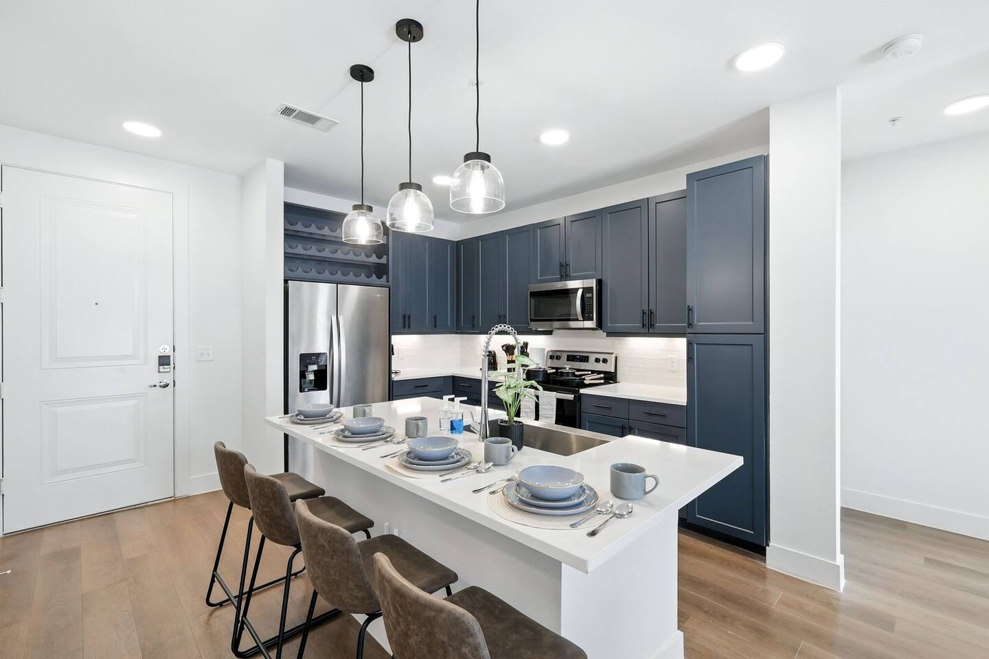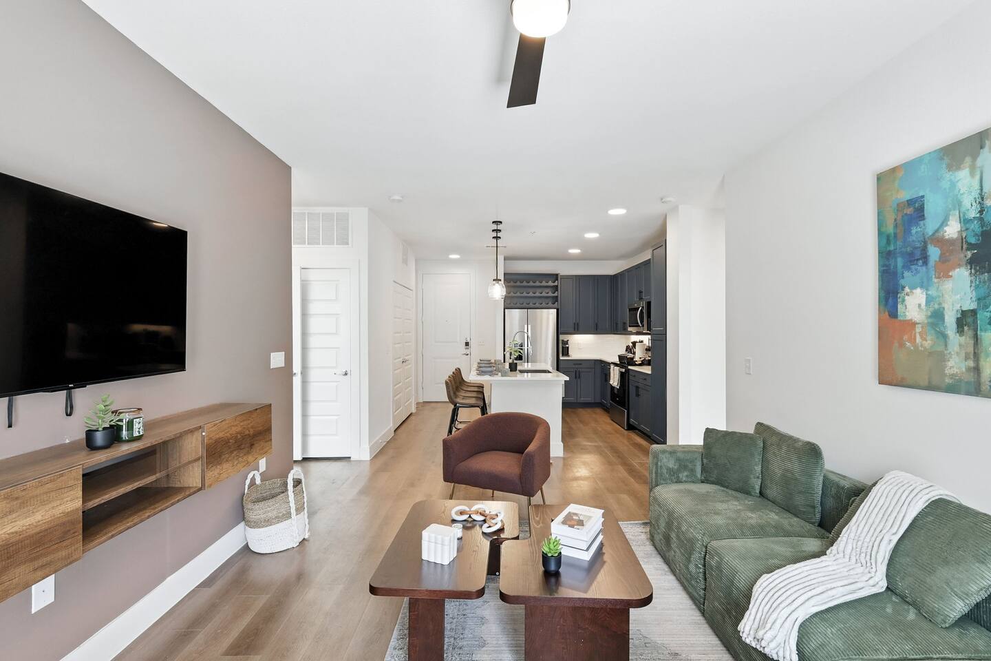 🔔 Respect the Space: Please treat the home with care. 🐾 Pet Policy: We welcome cats and dogs (size restrictions apply). Up to 3 pets per stay. Please inform us in advance — bringing a pet without prior notice may result in cancellation. Pet Cleaning Fees: 1–4 nights: $100 5–29 nights: $150 30+ nights: $200 🆔 Guest Verification through our Guest Portal: To comply with legal and property security rules, you may be asked to: Provide a copy of a valid government-issued ID Confirm your contact info Complete our verification portal In some cases, undergo a background check A mandatory Guest Protection Waiver. The waiver is $25 per night (capped at $150) and covers up to $400 in accidental damages, giving you added peace of mind during your stay. Important: Your info is collected only for verification and screening and is not stored or used for other purposes. 📜 Rental Agreement: By booking, you agree to: Follow our rental terms & conditions Understand that check-in instructions may be withheld until verification is complete ⏱ Verification Timing: All guests must provide required info within 24 hours of booking Same-day bookings: info needed within 1 hour Reservations may be canceled if verification criteria are not met 🛏️ Bunk Bed Safety: This unit features queen-over-queen bunk beds. Guests are advised to exercise caution when using the bunk beds. The company is not responsible for any injuries related to bunk bed use. 📹 Security & Monitoring: Surveillance cameras are located in building hallways for guest safety A Minut noise monitoring device is installed in the unit — it monitors decibel levels only and does not record audio or video 🏢 The Grayson on 4th: The Grayson is a modern, professionally managed apartment community. While the building and its amenities (pool, gym, yoga studio, golf simulator, clubhouse) are maintained by property management, we are not responsible for any building-level maintenance, repairs, or temporary amenity closures outside of our control. Our unit is professionally cleaned and fully prepped before every stay. If anything inside the unit doesn't meet your expectations, let us know right away and we'll make it right.