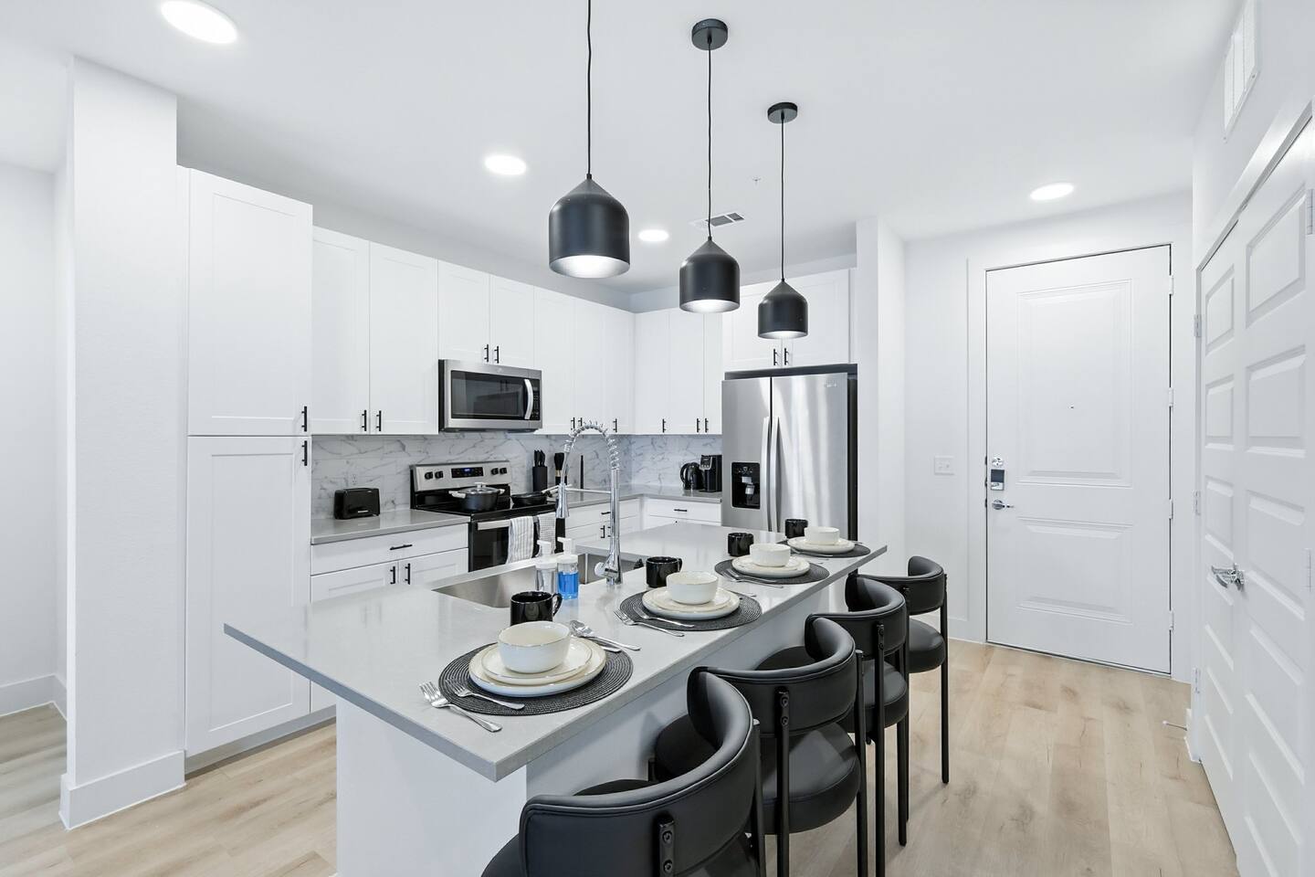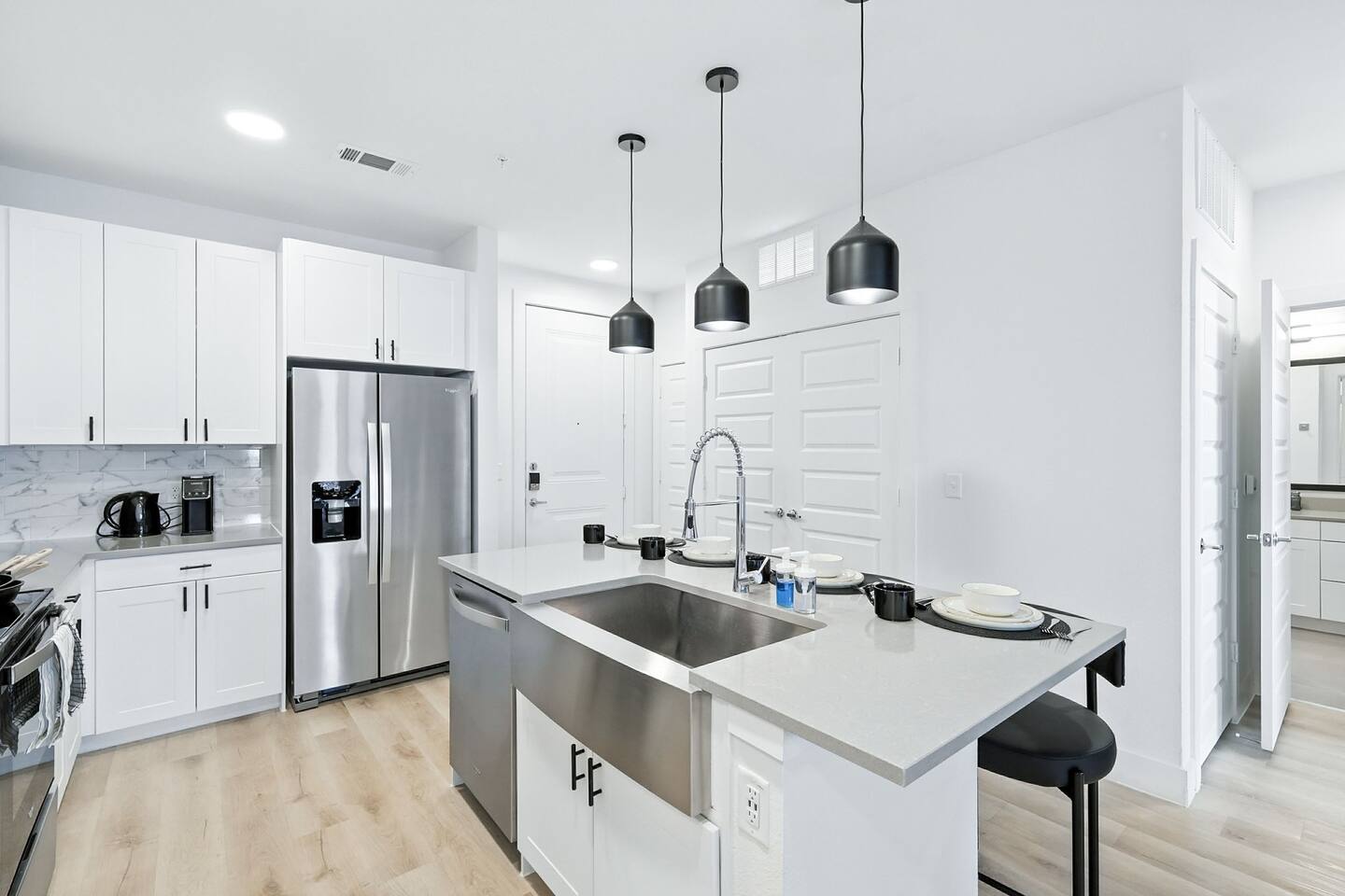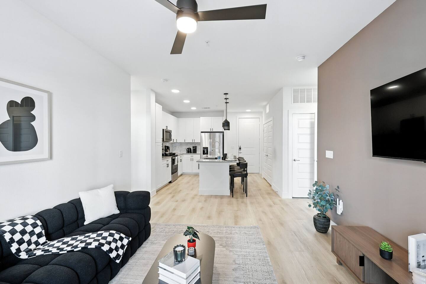 Modern luxury in the heart of Fort Worth. This sleek condo at The Grayson on 4th features high ceilings, designer finishes, and stylish décor — with resort-style amenities including a pool, 24-hour gym, yoga studio, golf simulator, clubhouse, and business lounge. The Stockyards 8 mins away, Top Golf is right behind the building, Convention center minutes away, and downtown's best dining and nightlife are minutes from your door. Comfort, convenience, and urban sophistication — all in one stay.