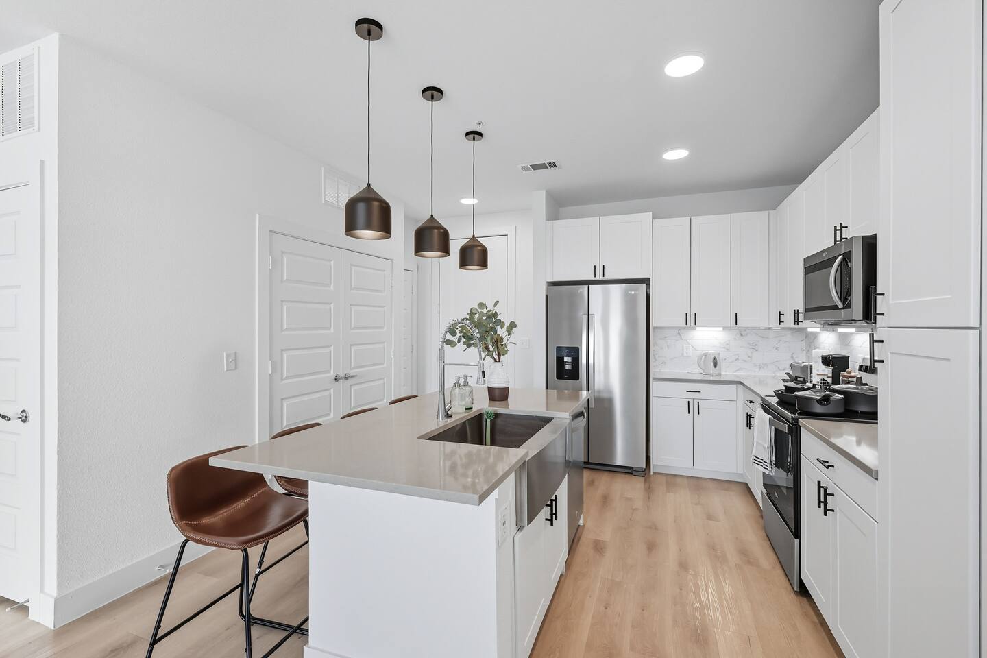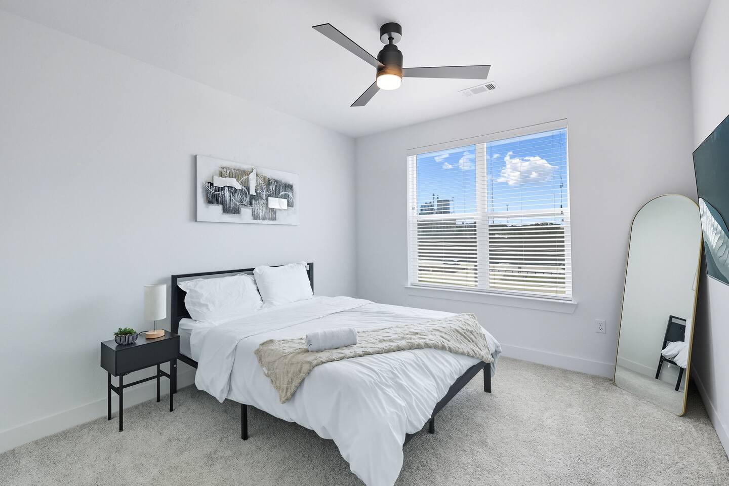 Modern luxury in the heart of Fort Worth. This sleek condo at The Grayson on 4th features high ceilings, designer finishes, and stylish décor — with resort-style amenities including a pool, 24-hour gym, yoga studio, golf simulator, clubhouse, and business lounge. The Stockyards 8 mins away, Top Golf is right behind the building, Convention center minutes away, and downtown's best dining and nightlife are minutes from your door. Comfort, convenience, and urban sophistication — all in one stay.