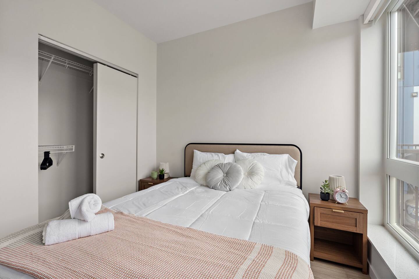 Luxury 2Bd/1Bath condo in the heart of Minneapolis with stunning city views through large windows, and designer finishes. Enjoy a chef’s kitchen with quartz countertops, spacious bedrooms with premium linens, and spa-inspired bathrooms. Building amenities include 24/7 gym, lounge, and parking. Walk to cultural attractions, Minneapolis Convention Center and US Bank Stadium—perfect for business or leisure. Experience upscale urban living at its finest.